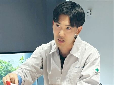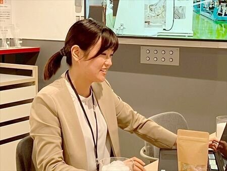 〈池内さん〉私が弊社を初めて知ったのは大学の講義でした。もともとは旅行業界に関心をもっていましたが、コロナウイルスの影響で就職が難しい状況となり、愛媛県内の企業から魅力的な会社を探しました。私もエントリーは30〜40社ほどしましたが、面接では3、4社まで絞りました。その際に軸としたのが、自分の身近な生活に役立っているものをつくっていること、そして、大学で学んだ高分子化学などの理系の学問を生かせることです。福利厚生なども確認はしていましたが「この会社でずっと働き続けたい」と思えるかを重視していました。